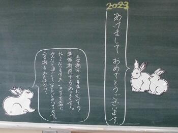 今日から第3学期が始まりました。各学級の黒板には学級担任からの新年のあいさつやメッセージがあふれていました。一人一人の児童が決意を新たに好スタートを切っています。