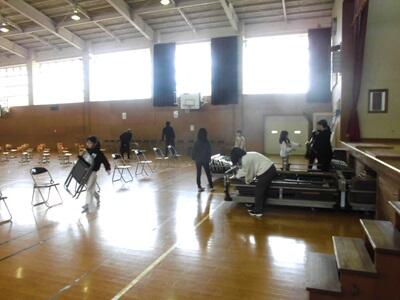 3月21日(木)の第37回卒業証書授与式に向け、会場準備や校舎内の飾りつけを行いました。お世話になった6年生の門出を祝おうと、在校生が心を込めて準備をしました。