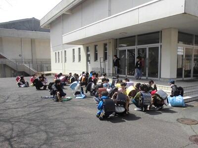 舞鶴市に大規模な地震が発生し、津波の危険があるという想定で避難訓練を行いました。1月の能登半島地震では、実際に避難を経験した児童もいることから、一人一人が意識を高くもち、学校近くの高台に避難することができました。