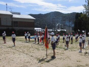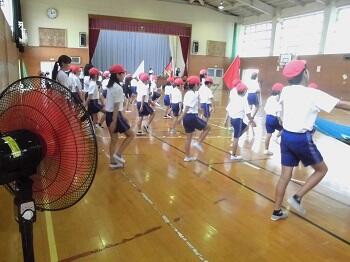 10月7日(土)に計画している運動会の練習が始まりました。この日は6年生を中心に入場と開閉会式の練習を行いました。残暑が厳しいので体育館で扇風機を回しながらの練習です。