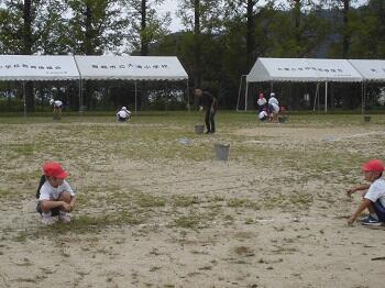 運動会に向けて運動場の整備を行っています。先日はシルバー人材センターさんに草刈りをしていただきましたが、トラック内や走路は児童が休み時間に草抜きをしています。雑草はなかなか手ごわいですが、みんなで環境整備を頑張ります。