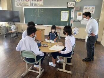 9月29日(金)若浦中学校区3校の児童と生徒が交流会を行いました。本校5年生と6年生児童が中学生と一緒に「未来学」での学びをグループワークで交流しました。まだ少し緊張しているようですが、これから回を重ねるごとに交流も活発になると思います。