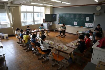 1年生 初めての給食・読み聞かせ 投稿: 学校管理者 (13:10) カテゴリー: 1年生 今週から給食が始まりました。1年生は2年生と一緒に初めて給食を準備して食べました。また、朝の会では担任が絵本の読み聞かせをしました。みんな行儀よく先生の読み聞かせを聞いていました。 Tweet -