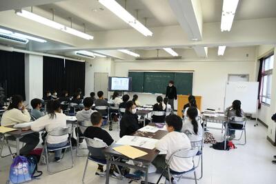 6年生は朝来小学校の6年生と合同で、若浦中学校での授業体験と部活動体験をしました。難しい問題を解く際にグループで話し合って考えたことが楽しかったようです。部活動体験でも楽しく体を動かし、あっという間に時間が過ぎていきました。