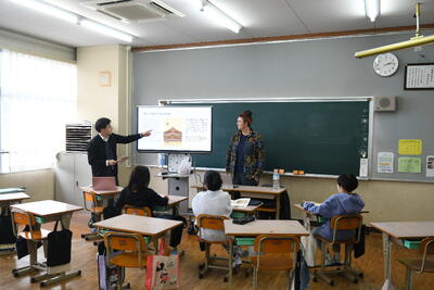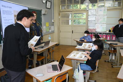 5年生の大浦未来学は2つのチームに分かれて活動しています。そのうちの1チームは、大浦校区への移住促進について関心を持って調べています。11月26日(金)には、外国から移住された野原にお住いの方にお話を聞きました。「海や山という自然があり、人が優しいこの場所は大好きです。」と言われ、子どもたちは改めて大浦校区の良さを実感しました。