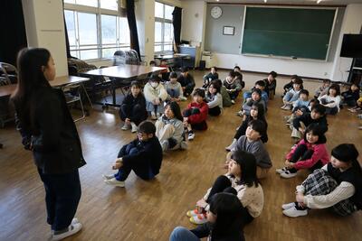 2月2日(月)、4月に入学予定の新1年生6人が学校に来てくれました。5年生と室内ゲームをしたり、1年生とおもちゃを作ったりして遊びました。入学を楽しみに待っています。